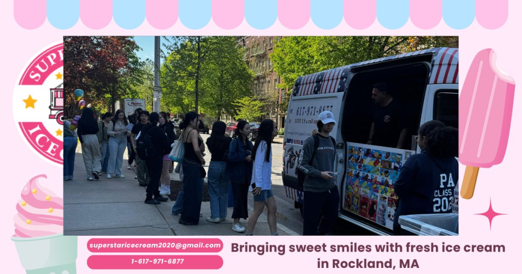 Rockland is a welcoming town in Massachusetts, ideal for hosting a variety of events with SUPER STAR ICE CREAM’s mobile ice cream trucks. From birthday parties and school events to corporate gatherings, weddings, and community celebrations, our trucks deliver delicious ice cream treats directly to your location. Serving all neighborhoods in Rockland, we provide flexible scheduling, premium ice cream brands, and a dedicated team focused on creating fun, memorable, and joyful experiences. Whether it’s an intimate backyard party or a large community event, our Rockland ice cream truck rental services ensure convenience, excitement, and delight for guests of all ages.