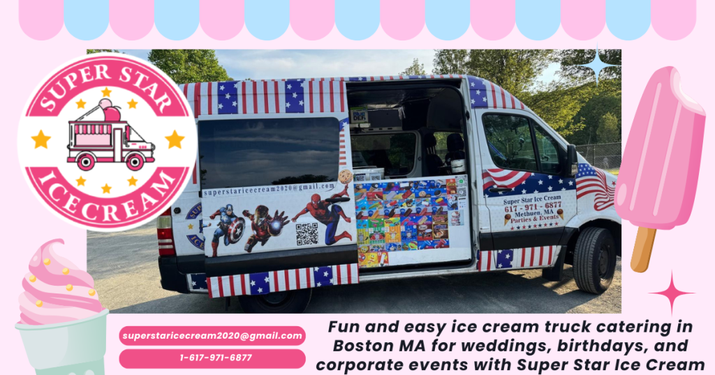 Planning an event in Massachusetts and looking for the perfect way to make it memorable? Ice Cream Truck Catering in Massachusetts offers a fun and delicious experience for birthdays, corporate gatherings, weddings, and private events. Whether you want to book an ice cream truck for your next event or rent a kids party ice cream truck rental, you’ll find affordable, local services tailored to your needs. From corporate ice cream truck catering Massachusetts to ice cream catering near Lynnfield and Wakefield, SUPER STAR ICE CREAM is the trusted brand bringing smiles and sweet treats to communities across the state. Ready to rent an ice cream truck near you? Let’s make your event unforgettable!